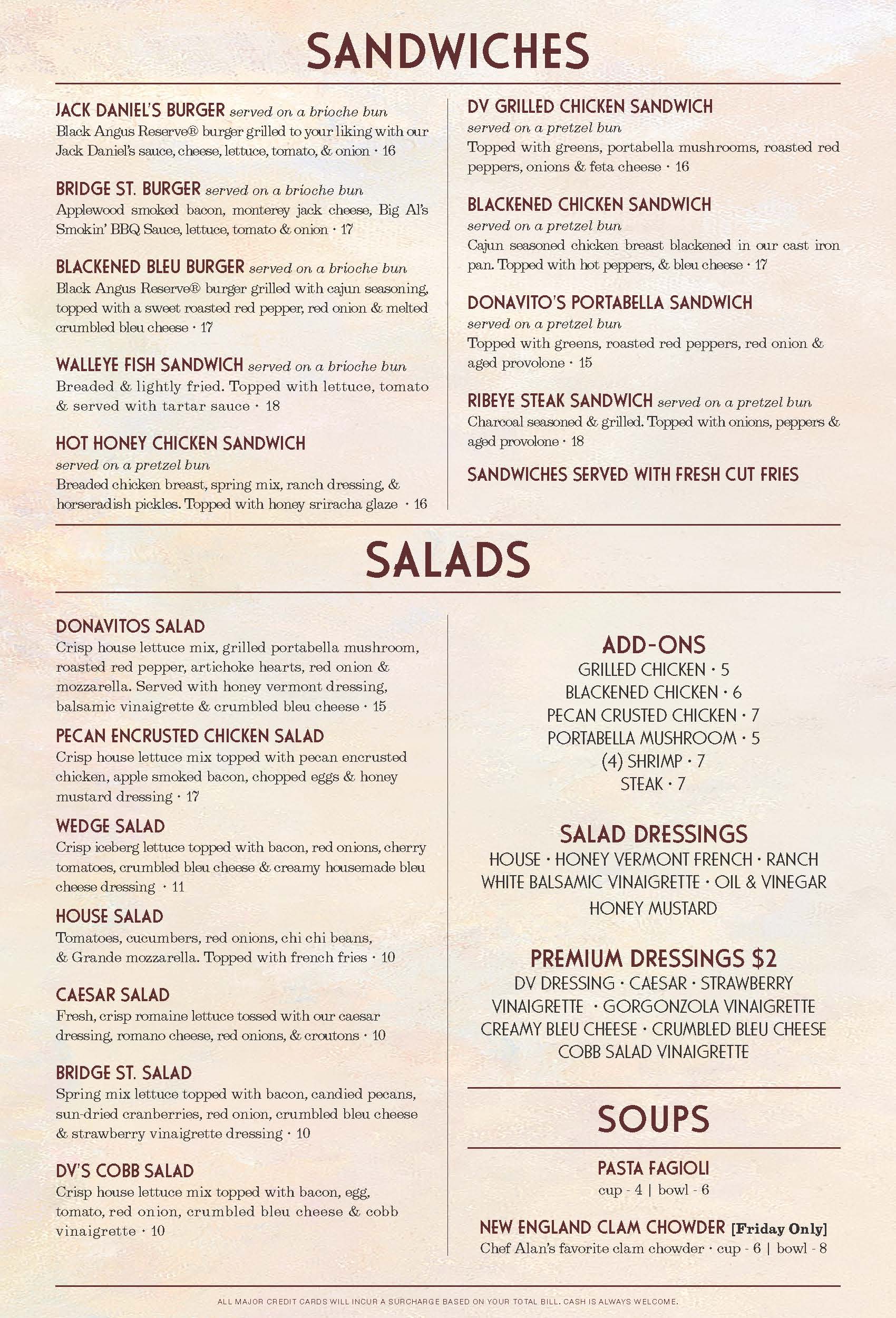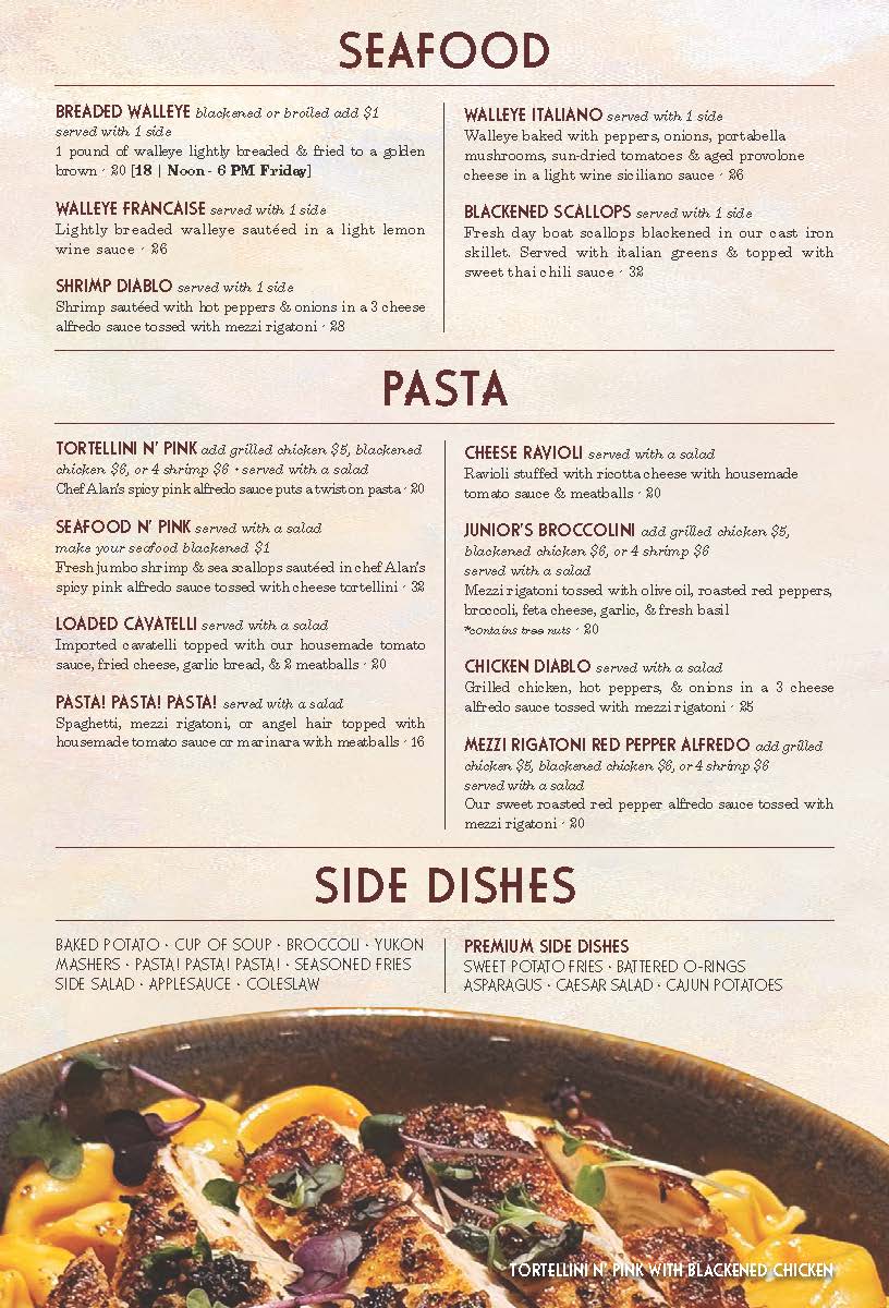 The Walleye is absolutely delicious. Best fish around and cooked with perfection. Their menu has a large selection of choice and the food is outstanding.